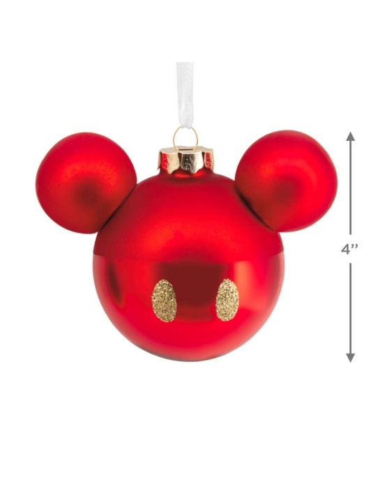 Bring a touch of joy and whimsy to your holiday celebration with this Disney Mickey Mouse Christmas tree ornament. Sure to please Disney fans of all ages, the premium blown glass decoration features Mickey's iconic ears in red matte and shiny finishes accented with sparkly gold buttons.