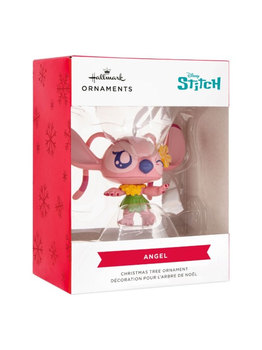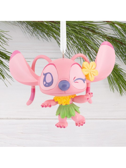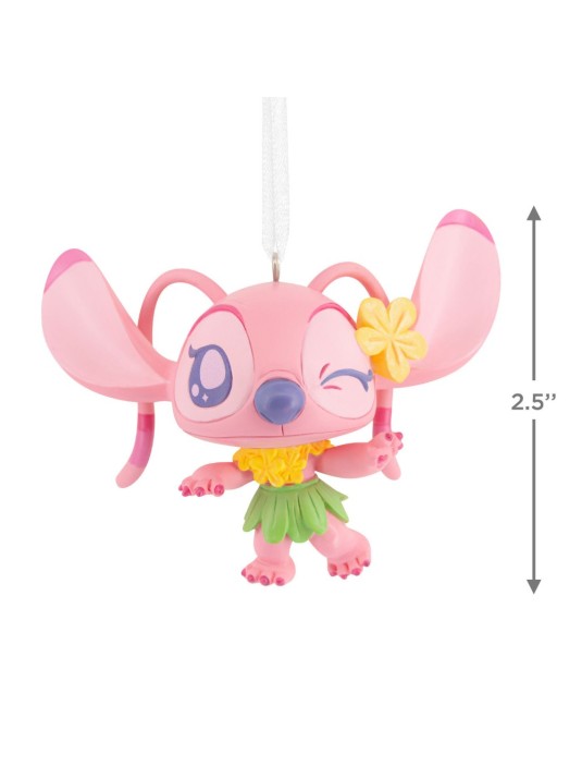 Add some tropical fun to your holiday decor with this Christmas tree ornament featuring Angel, Stitch's sweetheart from Disney Stitch. Fans will love this decoration of the adorable pink Experiment 624 alien with her signature antennae, dressed in a hula skirt and yellow tropical flowers.