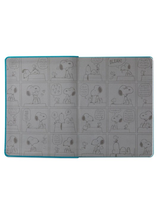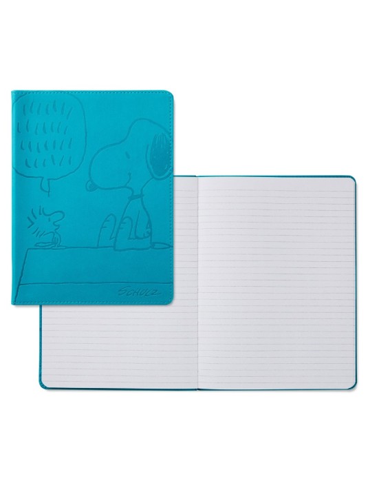 Keep track of your to-do lists, thoughtful reflections and memorable moments in this cute notebook that reminds us it's always nice to share our thoughts with friends. An etched design of Snoopy and Woodstock chatting on top of the doghouse adorns the faux leather cover that opens to reveal fun Peanuts comic strip illustrations. Journal includes a loop for holding a pen or pencil and 80 lined sheets of paper.