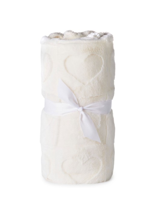 Stay cozy and stylish with this charming throw blanket featuring raised, textured heart designs. The plush blanket in soft winter white adds warmth and elegance to any room. Drape it over the corner of your couch, fold it at the foot of your bed, or wrap it around you when snuggled in your favorite chair. With the perfect blend of comfort and charm, it makes a sweet gift on Valentine’s Day and adds a romantic accent to your everyday home decor.