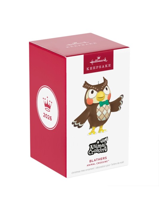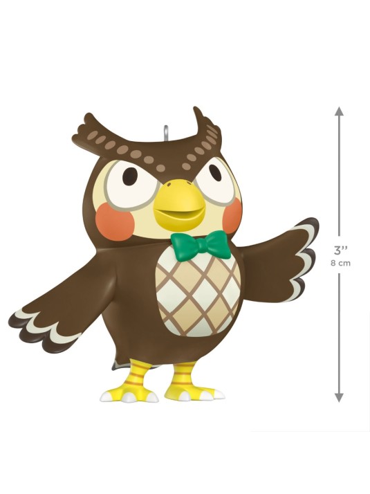 Fans of "Animal Crossing: New Horizons" will eagerly recall the interesting fossil facts they've learned from Blathers, and chuckle over his nervous fear of bugs, when they add this Christmas tree ornament to their collection. The scholarly brown owl Museum director wears his signature green bow tie in this decoration for the popular Nintendo video game series.