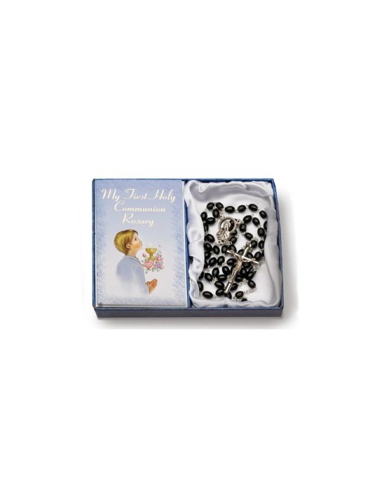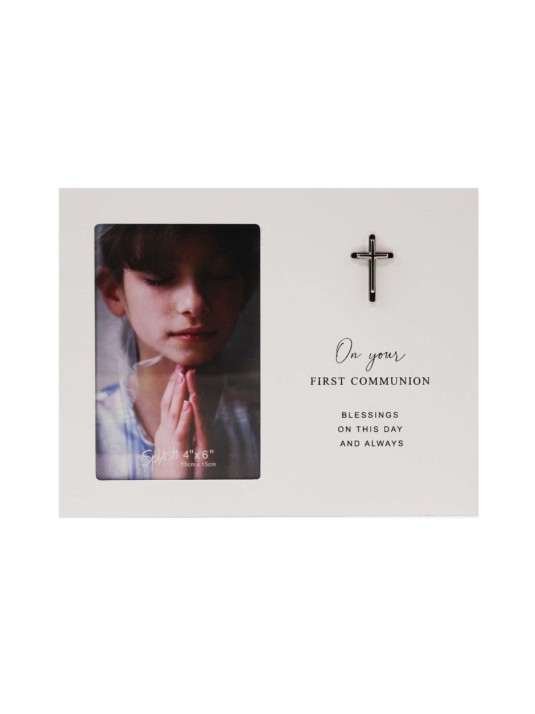 Commemorate an important step in the faith journey of a young boy with this porcelain figurine. Precious Moments handpainted statue features a blonde boy in a gray suit holding a rosary as he prepares to receive First Communion. Give this Holy Communion figurine to a son, grandson, godson or nephew who is receiving the Eucharist for the first time. Dimensions: 2.83" W x 5.16" H x 2.83" D