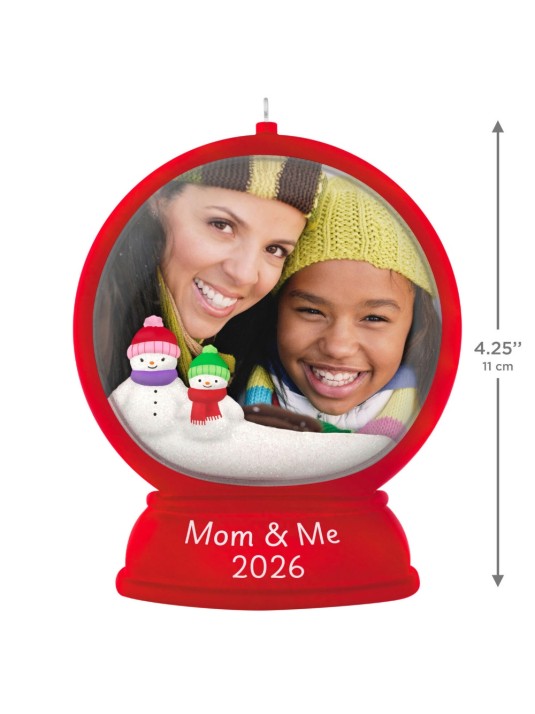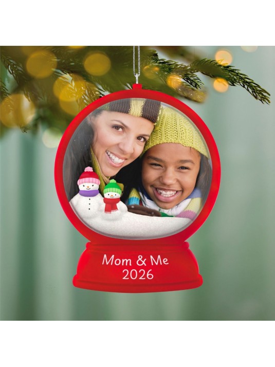 Holiday time is cozy and fun in a winter wonderland. Celebrate your special parent-and-child relationship with this cute picture frame Christmas tree ornament featuring a red snow globe with a pair of snow people and space to add a favorite photo of mom and daughter or son.