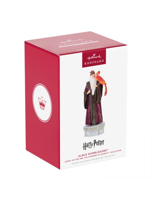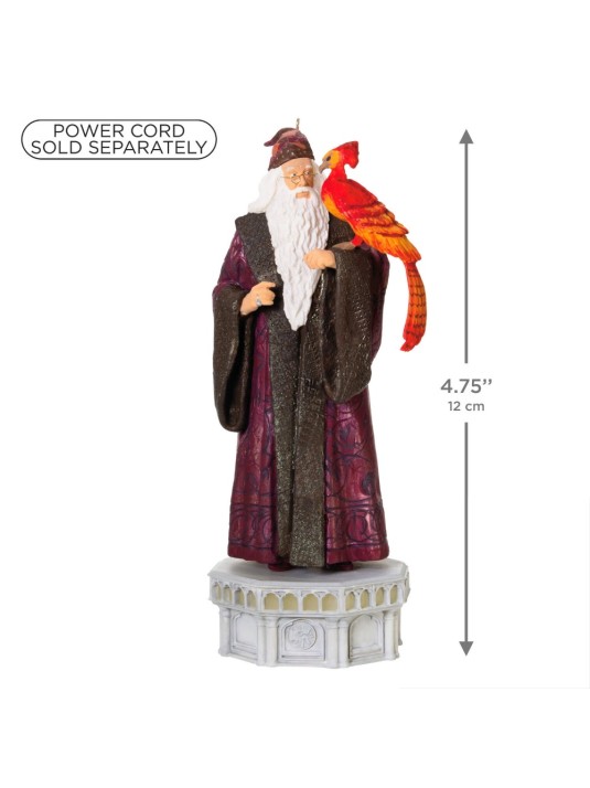 Relive the mystery and adventure that fills Harry Potter's second year at Hogwarts School of Witchcraft and Wizardry with this Christmas tree ornament. "Help will always be given at Hogwarts for those who ask for it." In his wise and clever way, Albus Dumbledore imparted advice that ultimately served Harry in the Chamber of Secrets when he unwittingly called Fawkes the phoenix to his side for assistance as he battled the Basilisk with the Sword of Gryffindor. Plug the ornament into Hallmark's Keepsake Power Cord (sold separately) for constant illumination, then press the button to start a light and sound scene from the movie. Connect all of the Harry Potter and the Chamber of Secrets Collection Storytellers ornaments — Harry Potter, Dobby, Ron Weasley and Hermione Granger, Lucius and Draco Malfoy, Hagrid, Gilderoy Lockhart and Albus Dumbledore — and the Flying Ford Anglia in the Whomping Willow Tree Topper (each sold separately) to unlock additional amazingly interactive performances.