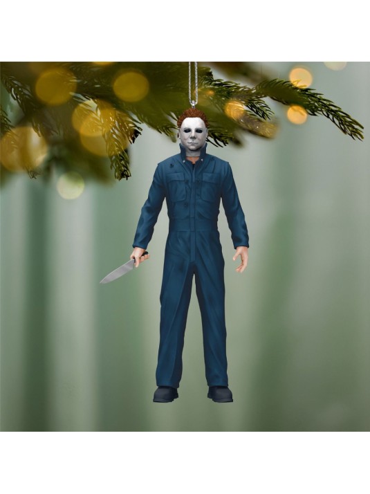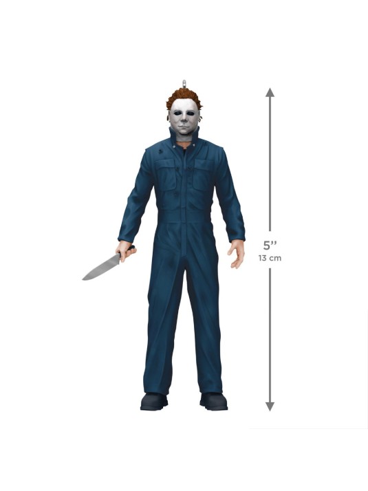 After escaping Smith’s Grove Sanitarium, Michael Myers returned to his small-town home to terrorize trick-or-treaters and everyone else on Halloween night. Delight horror-film aficionados and fans of the classic "Halloween" movies with this decoration featuring the slasher wearing his iconic blank-face mask and blue coveralls as he holds a large kitchen knife.