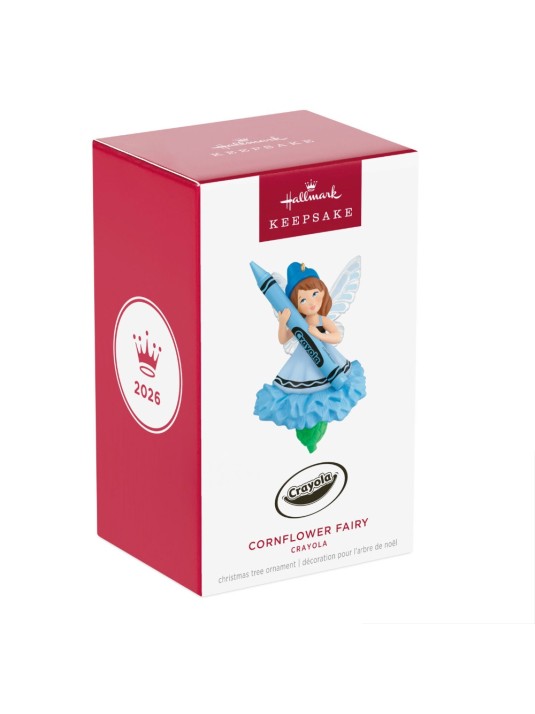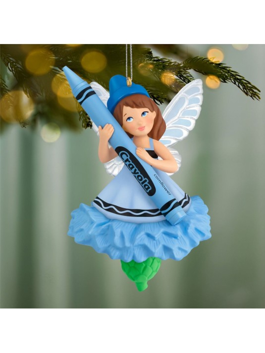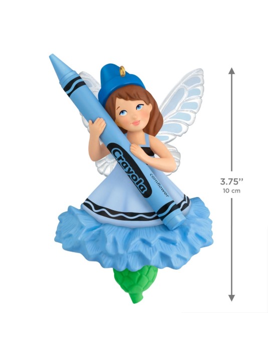 Make it anything but a blue Christmas when you hang this charming pixie Christmas tree ornament. Glitter accents add sparkle to the wings of this Cornflower Fairy who is shaded from her crayon-tip hat to her daisy-petal dress in the pretty blue color of her Crayola namesake. Makes a wonderful gift for your favorite little artist or a beloved teacher.