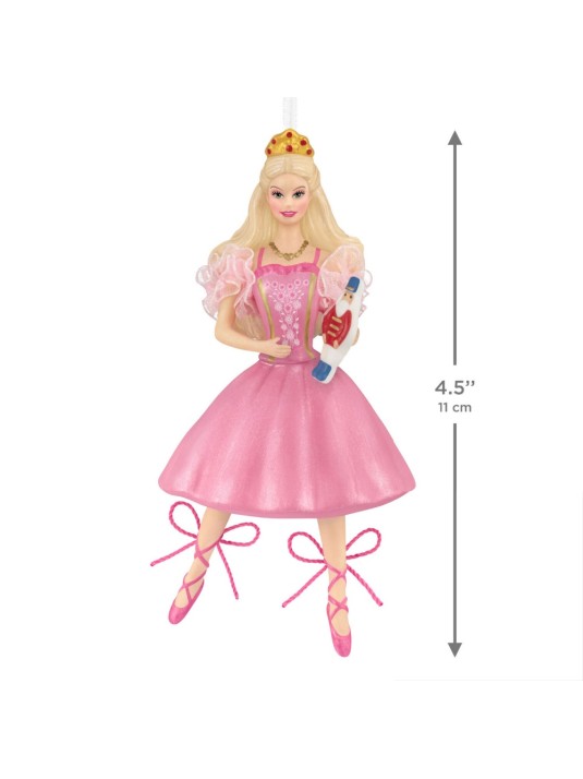 Pirouette into the holidays with Barbie! The graceful fashionista danced onto the screen 25 years ago when she starred in the "Barbie in the Nutcracker" movie, a creative adaptation of the classic story of "The Nutcracker and the Mouse King." Fans of the 2001 animated movie and the timeless doll will adore this porcelain Christmas tree ornament with fabric accents that features Barbie as a beautiful ballerina, pretty in pink from her tiara to her pointe shoes and holding a nutcracker.