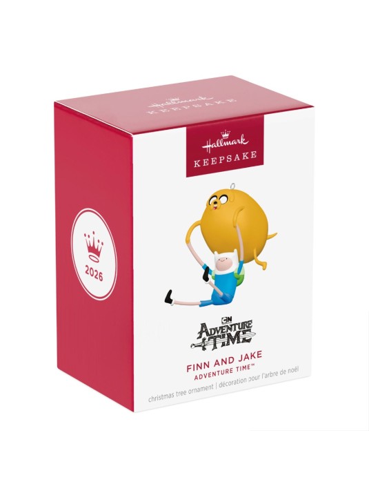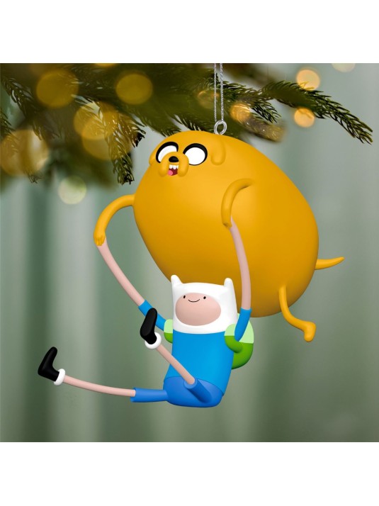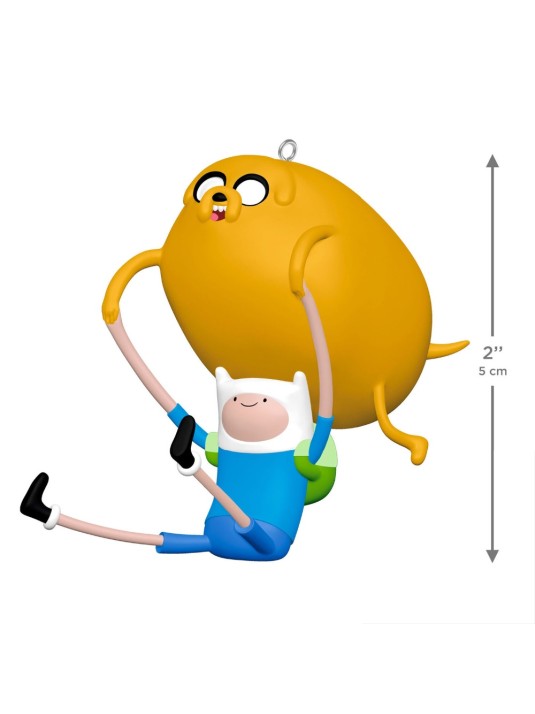 Shmowzow! You're sure to earn a Bro Hug for adding Finn and Jake to your holiday celebrations. This fun Christmas tree ornament features the boy and dog best friends from the popular animated series "Adventure Time" who live in the magical Land of Ooo, conquering challenges and righting wrongs. In classic goofing-around mode, Finn wears his green pack on his back and holds Jake's paws as the big yellow dog bounds over him.