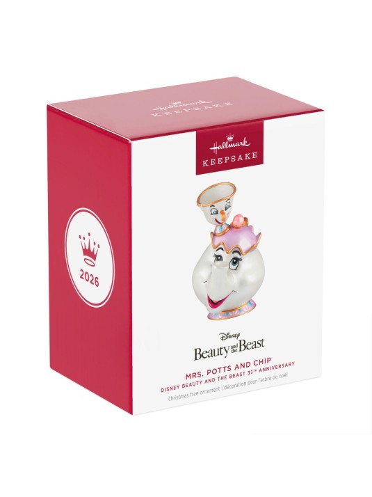 There's nothing like a friendly teapot to make the holidays a bit brighter! Celebrate the 35th anniversary of the enchanting Disney movie "Beauty and the Beast" with this Christmas tree ornament featuring the delightfully optimistic and nurturing housekeeper of the castle, Mrs. Potts, and her little boy, Chip the teacup.
