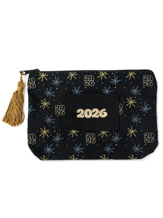 Celebrate their big achievement in organized style. This year-dated 2026 pouch is the perfect sidekick for grads heading toward a bright future. With a zippered closure and a handy front pocket, it’s ready to stash all the essentials — think pens, pencils, lipstick, or sunnies — plus a gift card or two in the front of the pouch for an extra surprise. The black fabric bag pops with dazzling gold and blue fireworks, and the sturdy metal zipper keeps their necessities secure.