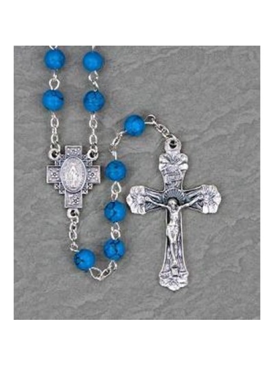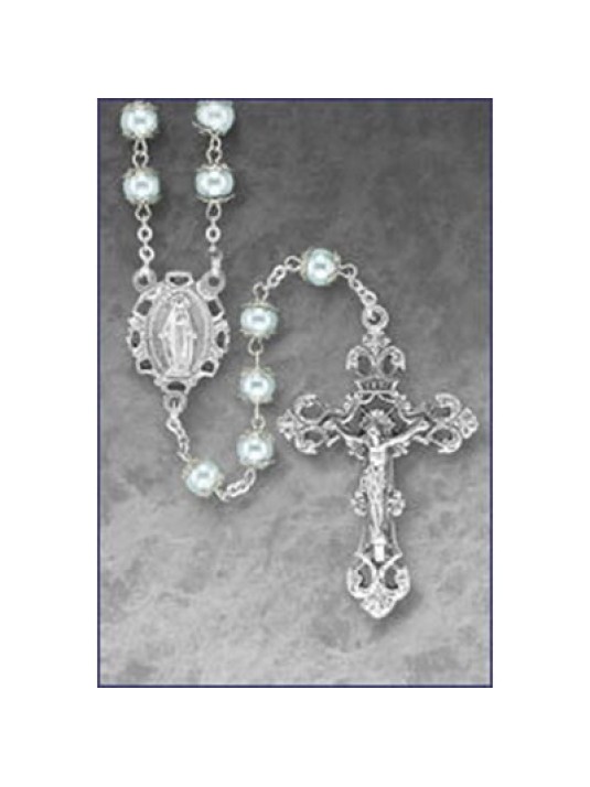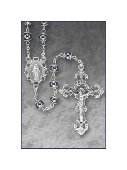 7mm Pearl Rosary with Sapphire O.F. Beads Boxed