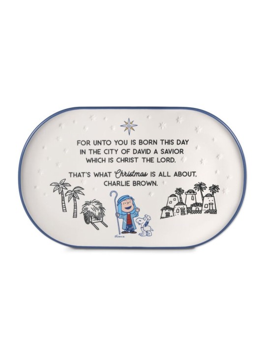 Spread tidings of great joy with this Peanuts talking plush with motion and light. Linus interactive stuffed character wears his Christmas pageant shepherd costume and holds a staff in one hand. Listen to the true meaning of Christmas when you press the base of the plush figurine and hear him say several lines from his iconic speech in the holiday special "A Charlie Brown Christmas." Peanuts fans of all ages will love to watch this plush Linus talk and move his arms as stage lights shine on him from the base.