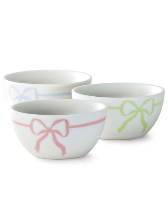 Add a healthy helping of vintage style to your Easter or Mother's Day gathering with this delightful trio of ceramic bowls from Hallmark's Lacey Chabert Collection. The small serving bowls feature graceful bow designs in pastel shades of green, pink and blue. Hallmark Channel star Lacey Chabert has been entertaining and inspiring fans for years, and with her new Hallmark collection, she's collaborated with our talented artists to bring her uniquely expressive style into your life. Perfect for serving up sweet treats, savory bites, or yummy snacks, these bowls make a stylish way to entertain and a thoughtful gift for anyone who loves a dash of nostalgia.