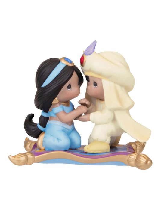 Take flight this holiday season on a magic carpet ride down memory lane. Fans of the Disney animated film "Aladdin" will love this porcelain Christmas tree ornament that features the classic couple as they embark on a wondrous journey together. Signature Precious Moments styling captures the sweet charm of these beloved characters.