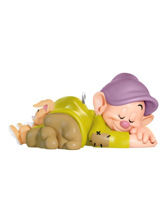 A lovable friend to all, Dopey snoozes with a sweet little bunny pal in this cute Christmas tree ornament. Fans of the classic Disney animated film "Snow White and the Seven Dwarfs" will love this decoration featuring the adorable dozing duo.