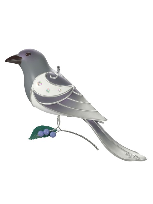 Add nature's splendor to your holiday celebrations with this pretty Ghost Magpie Christmas tree ornament. The elegant gray and white feathered friend, featuring metallic silver embellishments, gem details and a dangling berry stem, is sure to delight bird enthusiasts. The Limited Edition design is a repainted version of the 22nd ornament in The Beauty of the Birds series.