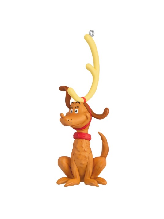 If you can't find some holiday spirit, just make some instead by hanging this fun Christmas tree ornament! Fans of the Dr. Seuss classic "How the Grinch Stole Christmas" will delight in this decoration featuring Max the dog wearing an reindeer antler and red collar that Grinch outfitted him in to lead the sleigh for his plan to steal all the presents and decorations in Whoville.