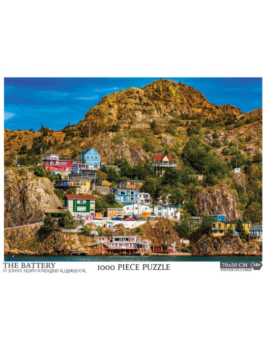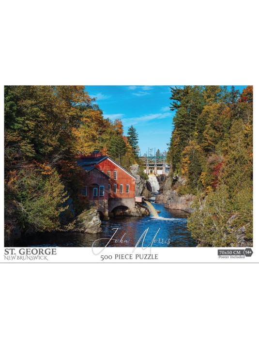 This puzzle offers a lot of activity with the green lantern hanging from the ceiling, the fish taxidermy on the wall, red and black plaid curtains that frame a field blanketed in snow while two cardinals keep a watchful eye.