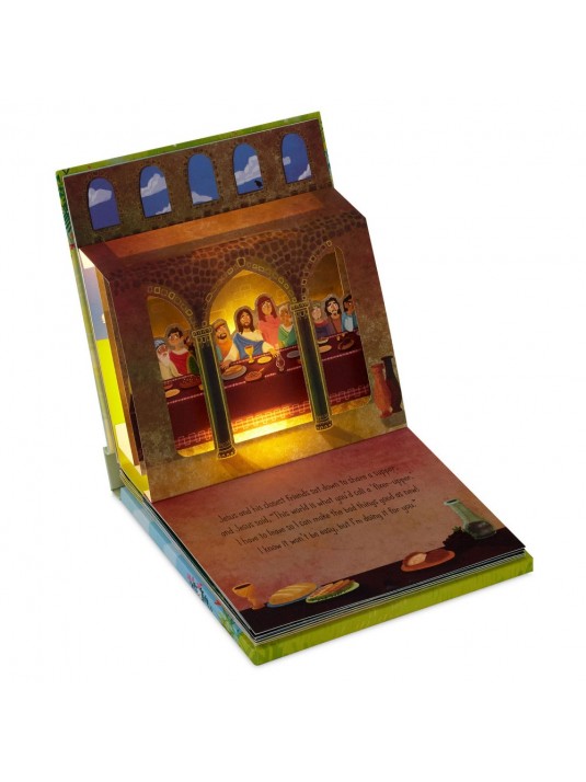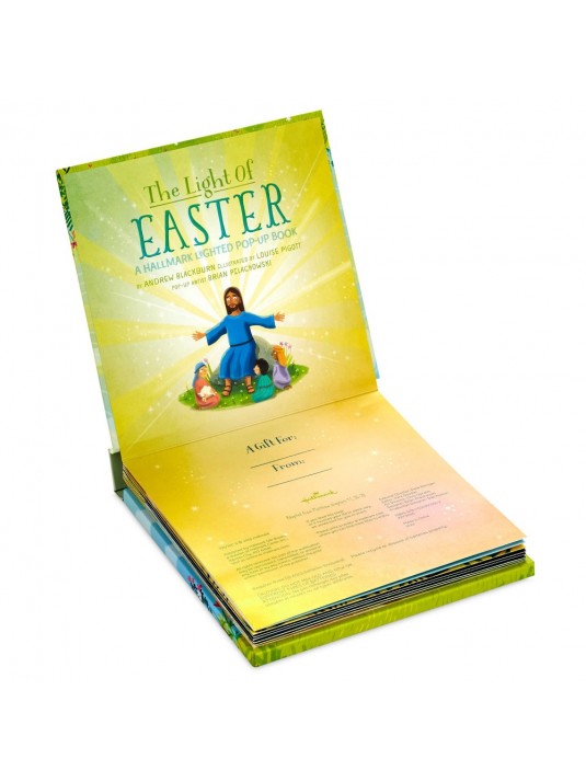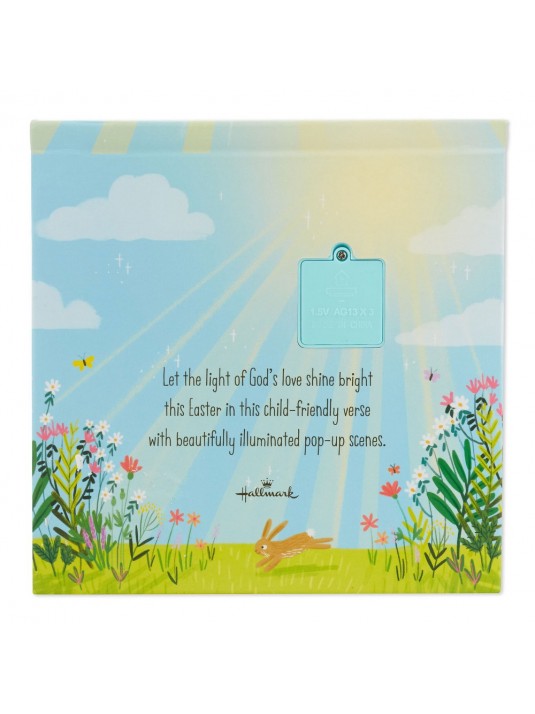 Easter lighted pop-up book features six illustrated and beautifully illuminated layered scenes.