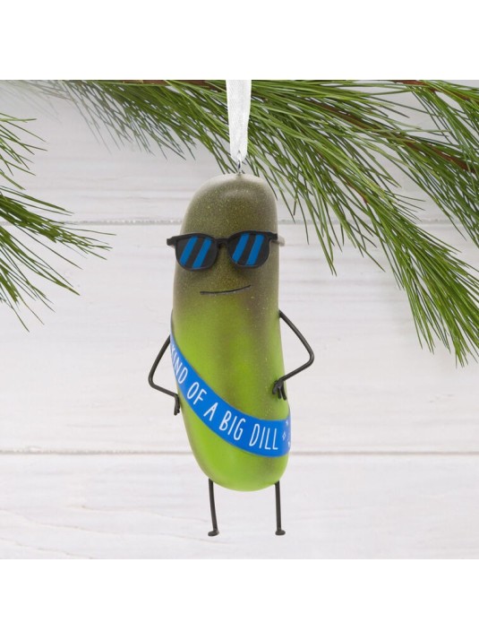 Tickle their funny bone with this cute Hallmark Shoebox Christmas tree ornament of a personified dill pickle in a pageant sash and a pair of sunglasses. The punny ornament is kind of a big deal. Hang it in a place of honor on your tree and friends and family will relish your humor!