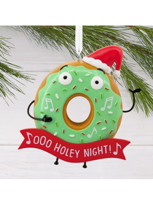 Sink your teeth into holiday puns with this funny and drool-inducing Christmas tree ornament from Hallmark Shoebox. An open-mouthed donut sings the very self-aware lyrics of the Christmas song "O Holy Night" while green frosting, sprinkles and a Santa hat add holiday flavor to the caroling cruller.