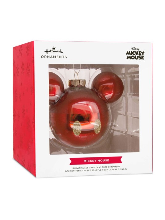 Bring a touch of joy and whimsy to your holiday celebration with this Disney Mickey Mouse Christmas tree ornament. Sure to please Disney fans of all ages, the premium blown glass decoration features Mickey's iconic ears in red matte and shiny finishes accented with sparkly gold buttons.