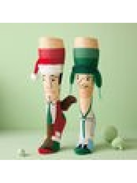 Step into the season of chaos and cheer with this two-pair bundle of novelty socks featuring Clark and Eddie from "National Lampoon’s Christmas Vacation." One pair features Cousin Eddie in his unforgettable fashion combo of a dirty white bathrobe, a green hunter's hat and black dress socks. The other showcases Clark Griswold in full festive meltdown mode, with his Santa hat and coat, a Christmas tie and a squirrel hitching a ride on his shoulder. Whether you're dodging relatives or decking the halls, these hilarious crew socks with fun attachments and furry accents will keep your feet warm and let you put your hap-hap-happiest foot forward.