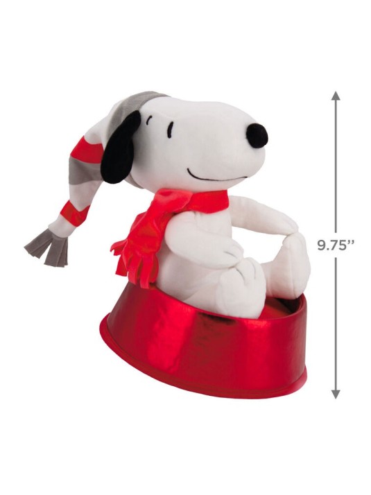 Let Snoopy bring holiday happiness to your home with this Christmas tree topper. The charming design features Charlie Brown's beloved beagle ready for a wintertime sledding adventure as he sits in an oversized dog dish wearing a festive hat and scarf. Perch the plush decoration on the top of a full-size Peanuts-themed tree for some family fun.