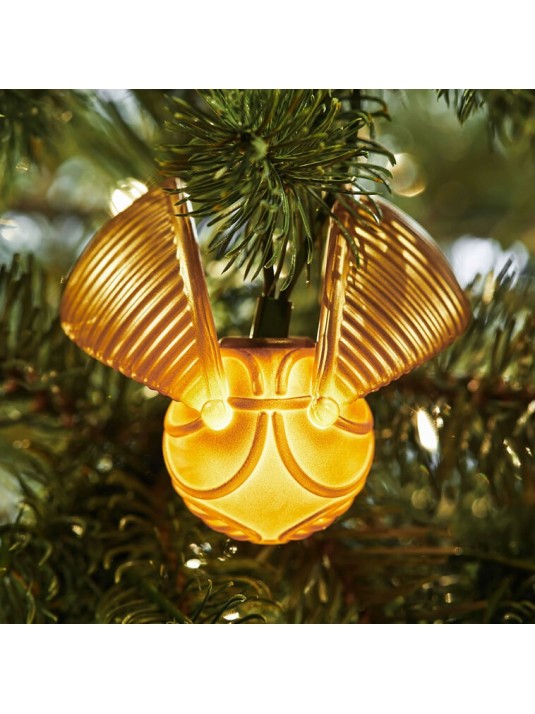 Ensure a holiday victory with your favorite Quidditch fans when you add these Golden Snitch string light covers to your seasonal decor. The set of 8 shatterproof plastic covers feature the winged Quidditch ball that Seekers chase in the competitive Wizarding World sport. Attach them to miniature light bulbs in a string of lights or on a pre-lit Christmas tree to add a winning touch to any Harry Potter holiday display.