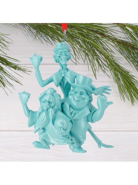 Disney fans won't mind these eerie travelers making themselves at home on the tree! This fun Christmas tree ornament features Ezra Beane, Professor Phineas Plump and Gus, the hitchhiking ghosts that join Disney Parks visitors at "The Haunted Mansion."