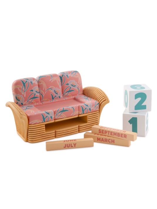 Bring a little Miami sunshine and Golden Girls spirit to your home or office with this unique perpetual calendar. Designed to look just like the beloved rattan sofa from their iconic apartment, this sculpted resin desk decoration captures every charming detail — from the coral cushions, to the floral print, to the expansive fan-shaped arms. Two number blocks nestle into the top of the couch while a slot in the base holds the three month blocks. Whether you’re planning your schedule or counting down to your next Golden Girls rewatch, this whimsical calendar is a sweet reminder that every day should include spending time with friends.