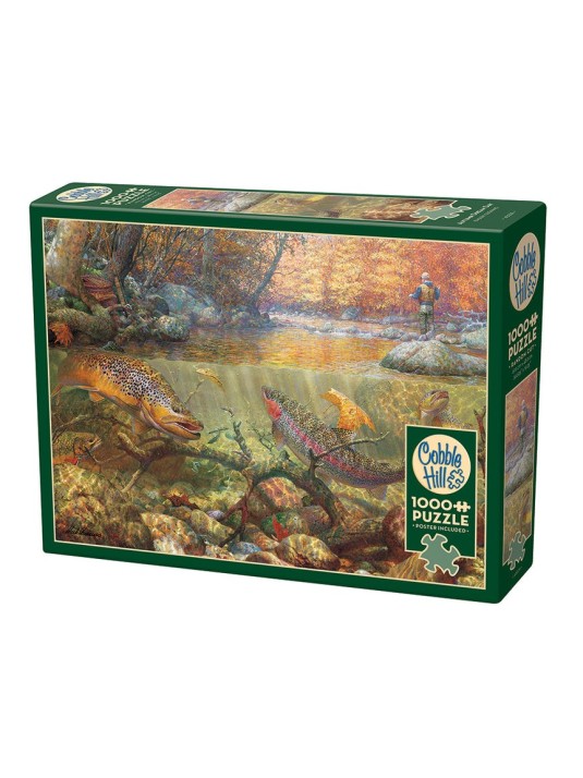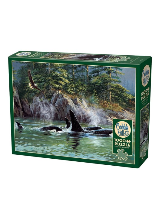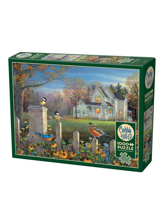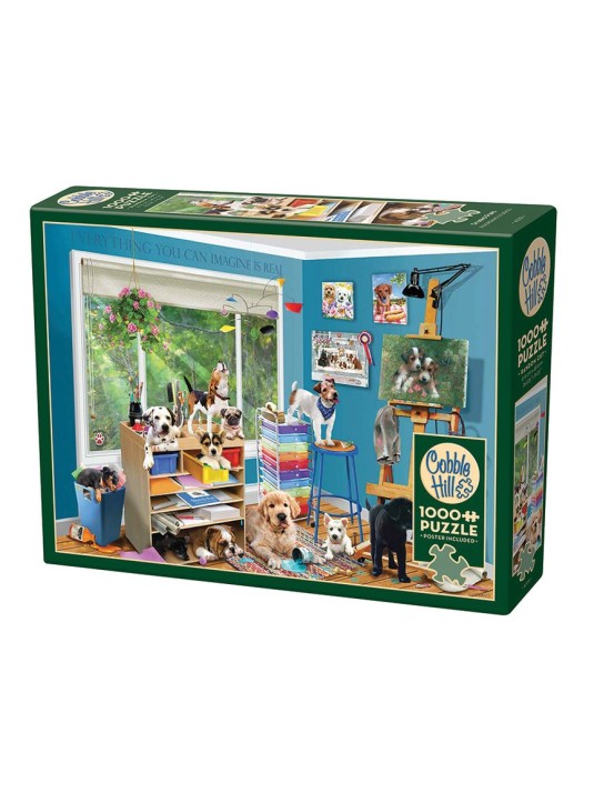 The Golden Girls jigsaw puzzle with character illustrations includes 1,000 interlocking pieces in a sturdy storage box.