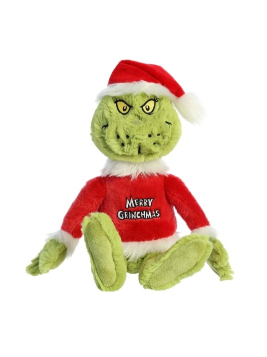 Merry Christmas Grinch from the Officially Licensed Dr. Seuss collection by Aurora is a festive and mischievous addition to the holiday season. Dressed in a bright red Santa outfit with a cheeky "Merry Grinchmas" slogan, this plush perfectly captures the Grinch’s transformation from a holiday grump to the heart of Christmas cheer. Made with soft, vibrant green fur and a classic Santa hat, this Grinch is both a delightful holiday decoration and a cuddly companion. His expressive face and detailed costume make him a standout piece in any Dr. Seuss collection, bringing a touch of Whoville magic to fans young and old during the festive season.
