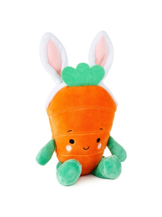 Delight friends and family with this adorable white bunny rabbit as your Easter centerpiece. Standing at attention at 11 inches tall, the plush bunny includes a pastel green bow around its neck and wears a sweet expression. Place it on a table for Easter dinner and surround it with decorated Easter eggs and springtime flowers or tuck it in a colorful basket filled with grass—this little bunny will fit right in wherever you want to display it. With floppy ears and embroidered features, it holds a little corduroy fabric carrot in its paws and makes a great gift for families or anyone who wants to brighten up their home for springtime gatherings.