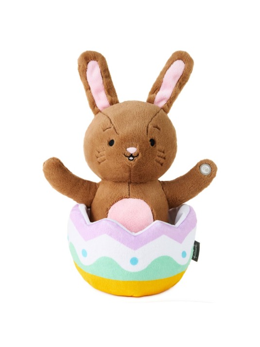 Strut your stuff and flap your wings to "The Chicken Dance" song as this funny duck bobs up and down, lays eggs and quacks along. This adorable duck will be the center of attention at any Easter celebration. Bright and cheery yellow duck stuffed animal is dressed for springtime fun in her pastel plaid neckerchief, and the whole family will want to dance along as she moves and honks to the catchy beat. Interactive stuffed animal includes 3 colorful plastic eggs to lay for lots of family fun.