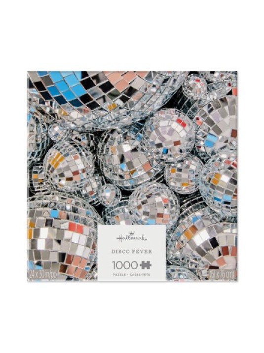 Be a dancing queen and get in the puzzling groove with this glittery, glitzy puzzle. The photographic collage puzzle of mirrored disco balls includes 1000 interlocking pieces and makes a dazzling display when completed. Break out your disco dance moves and turn game night into a Saturday Night Fever dream-come-true with this fun jigsaw puzzle. Dimensions: Box: 10.5'' W x 10.5'' H x 2'' D; Finished puzzle size: 24" W x 30" H