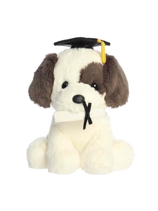 Honor an unforgettable achievement with the Grad Terrier Pup from Aurora's Graduation Collection, a cheerful plush designed to mark life's biggest academic milestones. This adorable pup features soft plush fur, a classic black graduation cap with tassel, and a rolled diploma held proudly in its mouth, creating a playful keepsake that captures the excitement of graduation day.