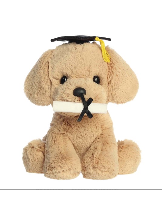 Mark a special milestone with the Grad Retriever Pup from Aurora's Graduation Collection, a charming plush designed to celebrate hard-earned achievements. This adorable pup features soft golden plush fur, a classic graduation cap on its head, and a rolled diploma held proudly in its mouth, creating a playful keepsake perfect for the big moment.