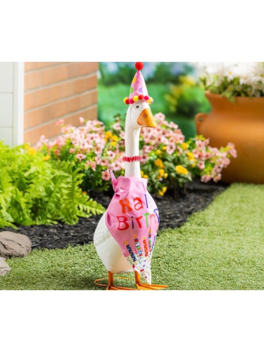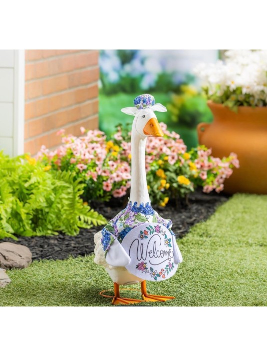 • Bring a whimsical charm to the front porch or garden with this Metal Porch Goose Statue.
