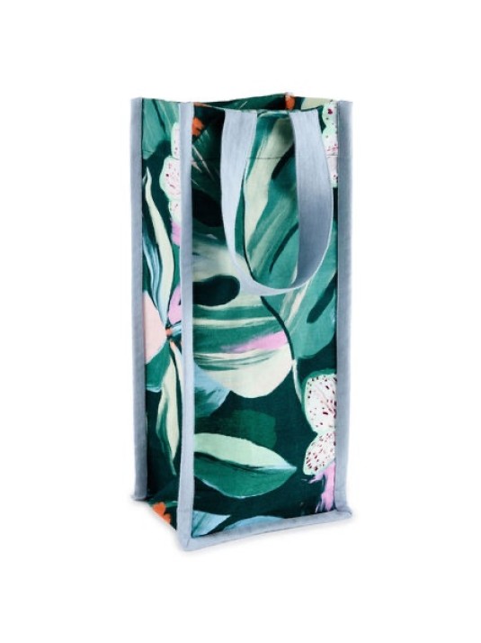 Present your favorite bottle of wine or bubbly in style with this elegant cotton fabric wine tote. Featuring a vibrantly illustrated floral design of speckled orchids, variegated leaves, bright orange blooms and blue chambray trim, the reusable gift bag combines charm and durability — for a gift that fits any occasion. Hallmark Channel star Lacey Chabert has been entertaining and inspiring fans for years, and with her new Hallmark collection, she's collaborated with our talented artists to bring her uniquely expressive style into your life. Perfect for birthdays, holidays, or hostess gifts, this reusable tote is a thoughtful way to elevate your gifting experience.