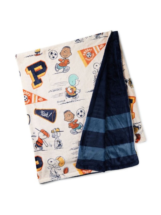 Brighten your day and any space in your home with the memorable moments of the Peanuts Gang on this colorful blanket. Rows of classic scenes with Charlie Brown, Lucy, Linus, Snoopy and more are depicted by decade on this super-soft plush blanket. Peanuts fans and collectors will love to wrap themselves in happiness with this cozy 75th anniversary throw.